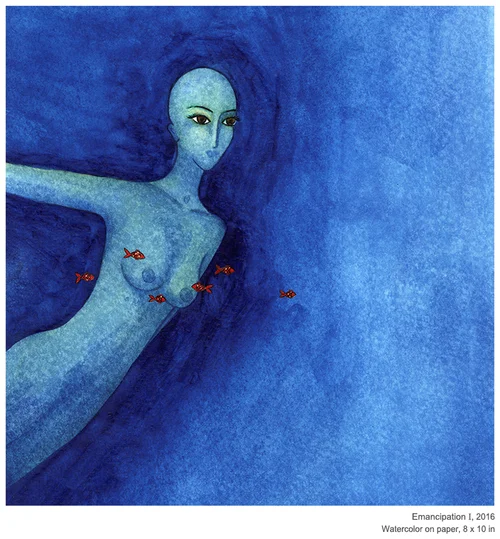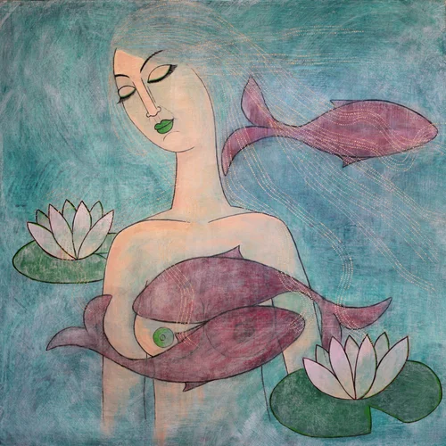 I dream of a world, where we live in peace with nature and with other creatures with whom we share our planet. In my life series, I painted that world. Each painting depicts a special women in my life, alongside animals who live around us, all calm and peaceful.